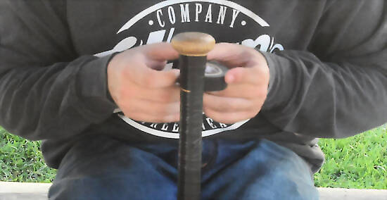 Find an appropriate grip. You’ll want to test the tape on your bat by holding the bat as if you were in the batter’s box and ready to hit. It’s important to learn how to appropriately hold your bat. Place the bat handle across the lower base of your fingers and close your hands around it. Your left hand should be below your right hand if you’re a right-handed hitter. Your right hand should be below your left hand if you’re a left-handed hitter. Rotate your hands so that your knuckles align. Stay loose and do not over-grip the bat.