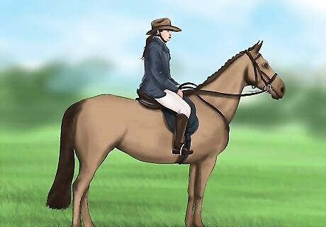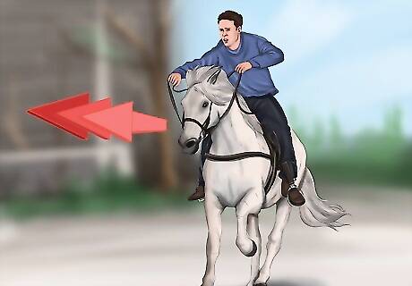 Have your horse reach a good, balanced gallop. Before a horse can execute a successful sliding stop, it must build momentum by galloping. The horse’s gallop must also be balanced so that it does not lean to one side or turn as it slides to a stop. If your horse’s gallop is off, work on correcting it before you begin training it for the sliding stop.