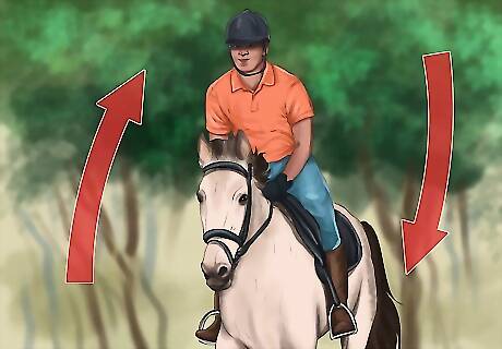 Analyze the horse’s stop. You should observe your horse’s stop from the vantage point of the saddle. It may also be helpful to have another person on the ground to observe the horse’s form, and your own. Look for the following: The horse’s back should be rounded as it stops. The front legs should continue to move in a “walking” motion as the horse stops. Your own legs and hands should remain slightly off the horse.