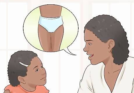 Use the correct terms for private parts. Make sure your child understands what their private parts are so they can control how they are touched. Use the correct terms for their private parts, such as “penis” or “vagina,” and encourage them to clean or wash their own private parts in the shower. This will help them understand what their private parts are and allow you to reinforce the importance of keeping these areas private or covered. For example, you may tell your child, “It is important that you keep your private parts covered and that only you touch them. You need to keep them covered with your underwear when you are at school and do not show them to anyone.” You should also tell your child that no one should touch their private parts. You may say, “No one is allowed to touch you there. If they ask to touch you there, you say ‘no’ or ‘stop’.”