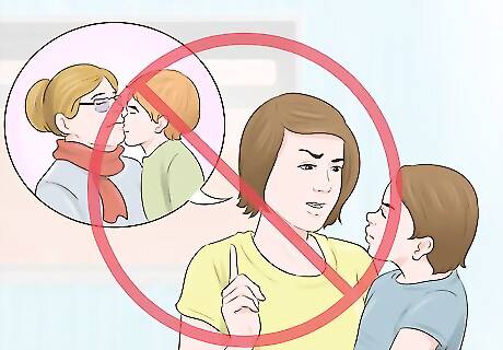 Do not force your child to hug, kiss, or touch others. Resist the urge to make your child hug or kiss relatives hello or good bye. Try not to force your kid to shake someone’s hand if they feel uncomfortable, especially if the person is a stranger. Allow your child to decide if they want to be touched by others. This will help them feel in charge of their bodies and give them the chance to consent before being touched. For example, rather than say to your child, “Kiss your grandmother goodbye”, you may ask your child, “Would you like to kiss your grandmother goodbye?” You may also simply skip the hugging or kissing portion of a greeting so your child does not feel pressured to do these actions with others. Try to give your child space to decide these actions for themselves.