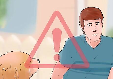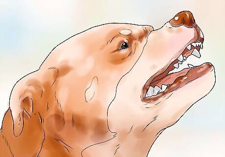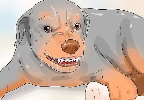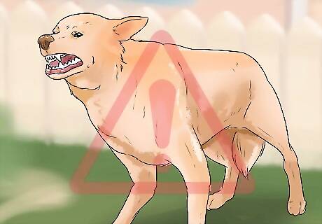 Identify aggressive body language. An aggressive dog may show her teeth and stick her ears straight up. On some dogs, the fur on the back will stand on end. If the ears are pressed against the dog's head, the dog is most likely frightened, not aggressive.