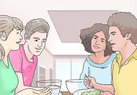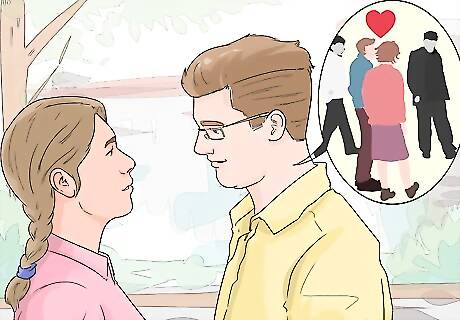 Spend time with other people. If you are only hanging out with each other, people are going to suspect that you are together. Instead, hang out with other people at work or school. When you go out to the same places, you should make sure to mingle with other people instead of being obvious by spending time with each other. Don’t spend the entire time staring at your partner or sharing looks with them. This will tip people off that something is going on. You may want to reduce the temptation to let your feelings show by limiting the amount of time you both go out to the same places or with the same people.