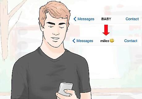 Use different names in your phone. Chances are, you are going to be texting or calling your new partner. However, if you are trying to keep it secret, you may want to use different names in your phone. This way, if someone sees a new text pop up on your lock screen, they won’t see your partner’s real name. The problem with this is that they may ask who this new person you are texting is. You may tell anyone asking that it’s a friend from work or school, or someone you just reconnected with from your past.