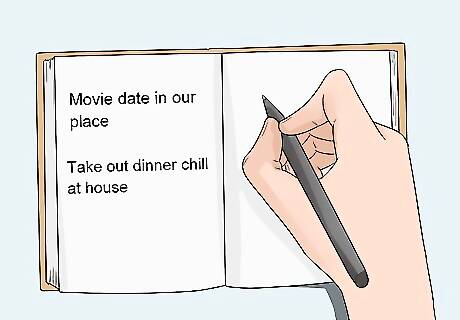 Plan dates at secret meeting spots. When keeping your relationship a secret, you can’t just go into town to go to dinner or a movie. Anyone you know may see you. Instead, go to private spots where no one will find you, or go on dates in nearby towns or cities. For example, you may decide to see a movie in the large city near where you live, or decide to drive to a restaurant in a smaller town where neither of you know anyone. If you live alone, you can have dates where you stay in, order take out, and watch movies. However, if you live near people who know you, they may notice the same car outside your home. They may also recognize your partner’s car in your driveway.