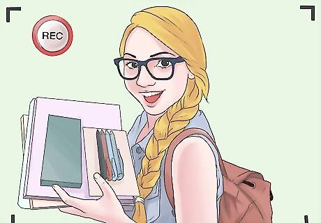 Record a "haul" video. Shopping haul videos in which you share everything that you brought home from a particular shopping spree are easy to record and fun to share. Provide a brief anecdote or description of each item to make the video fun and informative. They don't have to be new acquisitions. Share a collection that you've had for a long time. Pick something you're passionate about or that you have a big recent collection of. You might record a recent haul of: Clothing or jewelry Books, music, or records Make-up Food Booze Shoes or hats Toys Games