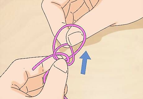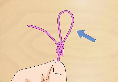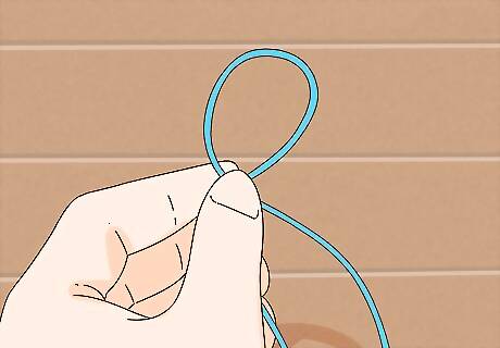 Pinch the junction where the working end and standing part meet. Use the thumb and forefinger on your left hand to pinch the junction where the two parts meet. The tag end should be sticking out underneath the standing part. You should have enough material left on your working end to repeat this process. If you don’t, start over. You have to make a near-identical loop after making your first one and you don’t want to run out of space.