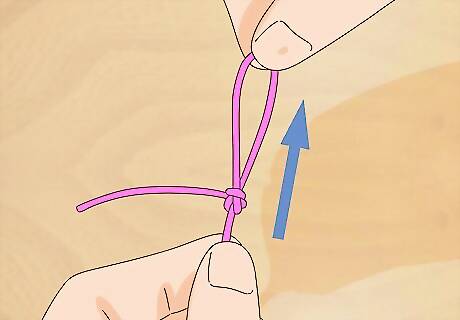 Pull the second loop away from the standing part to tighten the knot. While holding the standing part tightly, pull the second loop in the opposite direction. The knot will tighten around the junction where your two loops meet. You may need to steady the remaining portion of the working end between your thumb and forefinger while gripping the standing part with the same hand. This will prevent the two loops from shaking free.