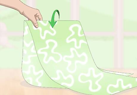 Fold the long edge of the fabric down 2 inches (5.1 cm). Grab the long side and start creating a fold along the edge, making it as even as you can down the fabric. Crease the fold with your fingers to help hold the fabric in place. Some people just scrunch the fabric over as they're laying it on their head.