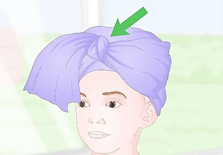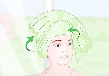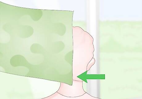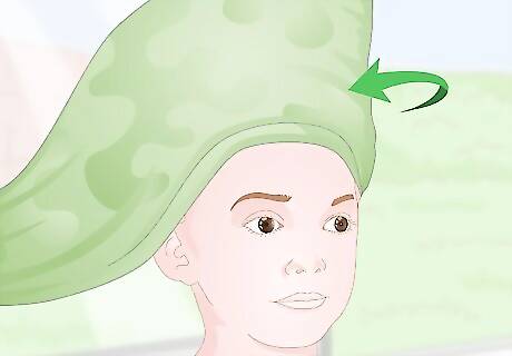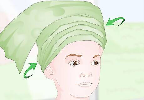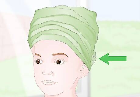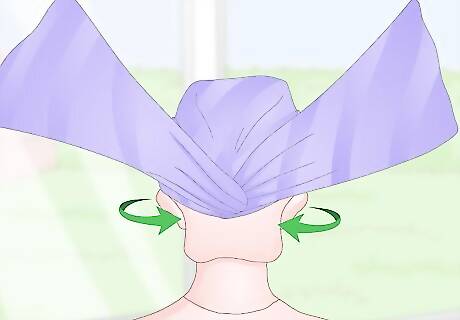 Place the end of the fabric at the nape of your neck to start wrapping toward the front. Start with the right side of the fabric facing out and the folded part at the bottom near the nape of your neck. Hold this end in place as you wrap the fabric tightly around toward the front. The front of the fabric should go over the top of your ears and cover part of your forehead.
