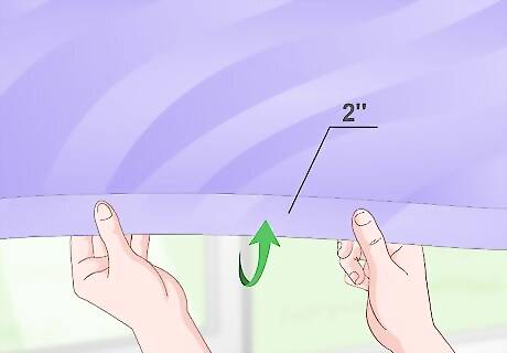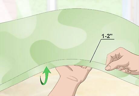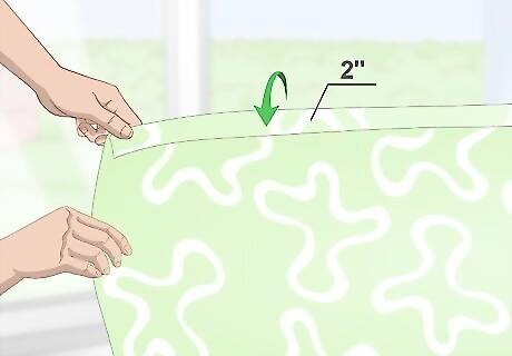 Fold the edge down 2 inches (5.1 cm). Along the long side, bend the fabric over itself the whole way down. Make sure the fold is even all along the length of the fabric and then crease the fabric along the fold. Run your fingers along the crease to make it as sharp and crisp as possible.