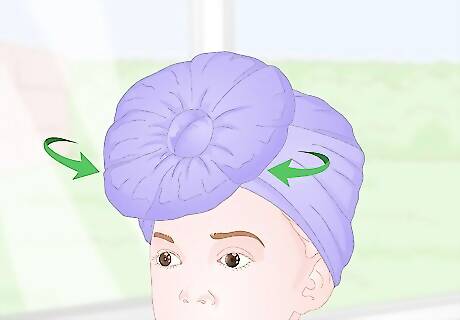 Tuck the fabric under itself to form the final circle. Adjust the fabric so that the outside edge of the circle goes underneath the rest of the circle. Pull on the folds until you have a perfect circle in front just off to one side on your head. Adjust any pleats in the fabric on the sides to finish the look. If you have too much fabric, you can safety pin it into place underneath the circle.