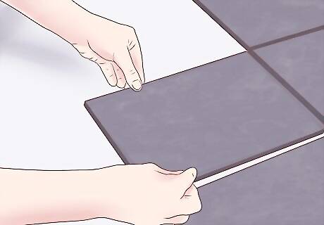 Mark high and low spots. Using a 4-foot (1.2-m) level, look for any abnormal high spots or low spots on the existing tile surface. Mark high and low spots with chalk. Use different symbols to distinguish one from the other. For instance, an "L" or flat line for a high spot and an "H" or triangle for a high spot. Make sure that all four corners of your high or low spot are marked.