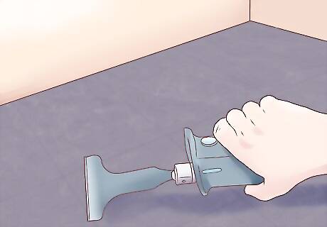 Add extra mortar to raise up a low spot. When you reach areas of the floor marked as low points, apply enough extra thin-set to the back of the tile you expect to place there to raise that tile up to the level of the tiles around it. Check the new level of your tile with a level to verify that it is now at the same level as the adjacent tiles. Since thin-set dries slowly, you should be able to remove a newly placed tile and adjust the amount of mortar as needed to fix the issue if you do not get it right on the first try.
