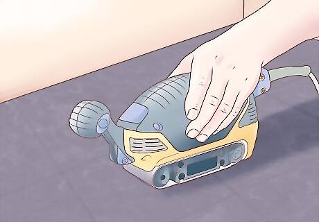 Roughen the rest of the tile. Sand down the entire tiled surface using a belt sander or orbital sander with an 80-grit belt. Make sure that any surface glaze or finish has been thoroughly scratched. A rough surface has more grooves in it for mortar to sink in, allowing the mortar adhere better. For that reason, roughing up the surface of the old tiles will make it easier for the new titles to stick in place. Alternatively, you could roughen the tiles by using a bundle of steel wool if an actual belt sander is not available to you.
