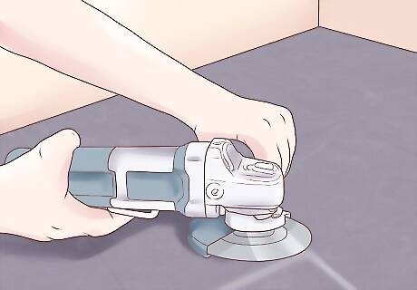 Grind off any high spots. Use a right-angle grinder with a masonry wheel attachment to grind down any old tiles currently creating a high spot in your floor. Periodically check your work using a level to verify that the spot is roughly even with the rest of the floor. Note that you can only fix high spots during this stage. You can remedy low spots later on.