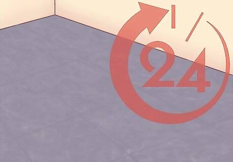 Let dry for 24 hours. Before doing anything else with your newly tiled surface, you need to let the thin-set dry for a full 24 hours at minimum. Note, however, that you can gently clean off any wet mortar from the surface of your tiles with a wet rag before 24 hours pass. Doing so is even advised, since dry mortar is more difficult to clean off. When dry, gently tap each tile with a wooden mallet to make sure that it is secured properly. As before, loose tiles can be found by listening for a hollow sound. There should not be any loose tiles at this point, but if there are, remove the problem tiles and reapply thin-set to the back of the tile. Place the tile back in its correct position in your floor and let the mortar dry for another 24 hours.