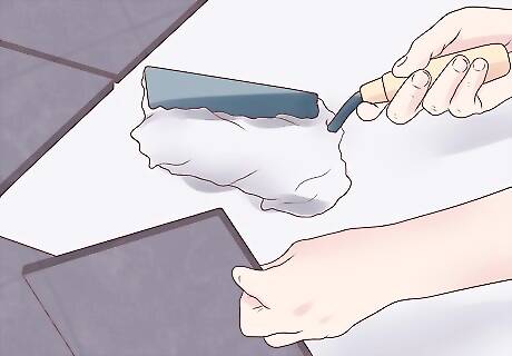 Check for loose tiles. Lightly tap on each old tile with a wood mallet. If the sound is solid, the tile is fine. If the sound seems hollow, the tile is loose and needs to be fixed. Mix a small batch of thin-set mortar according to the manufacturer's instructions and apply it to the back of the tile. Lay the old tile back in its place. If you had to adhere old, loose tiles, wait 24 hours for the mortar to dry before moving onto the next step.