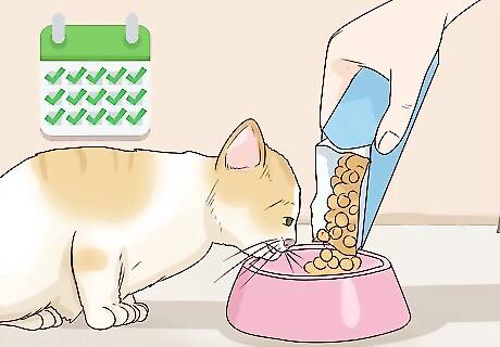 Follow a clear schedule. Feed your cat at the same times every day. Change the litter box every day or every other day consistently. Designated a few times during the day as ‘play periods,’ such as from 1-2 in the afternoon. Your cat is less likely to give in to their fears if they know what to expect from you and your movements.