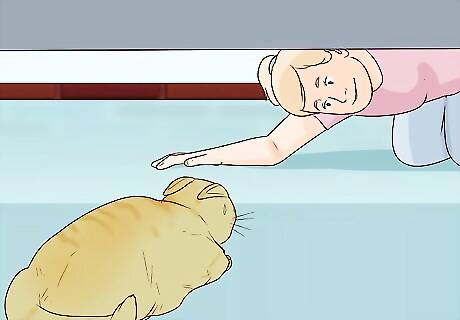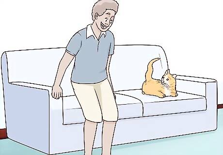 Offer rewards. If your cat stays in a room during a busy period, such as when you have guests over, make sure to give them a few treats throughout the visit. You can also make a habit of using treats to lure your cat onto higher ground, such as their cat tree, if you know that sudden movements might occur. Pay attention to your cat’s body language to know when a treat might be most welcomed.