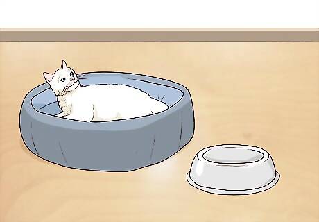 Provide a safe space. Choose one spot in your household that belongs to your cat and your cat alone. Place your cat’s bedding and food and water bowls in this area. Keep a few toys in this space as well. Try to limit visitors into this room. If you place a kitty cave or other hiding options in this area, your cat will likely go here if they are afraid or anxious, making it easier to check on them.