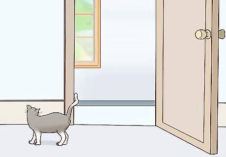 Leave doorways open. This gives your cat the option to exit a situation that they are not comfortable with. Then, they can reenter a room when they are calm and ready. When a cat is trapped in a room, their anxiety levels skyrocket and it is hard to determine whether they are simply scared of movement or fearful due to the inability to exit.