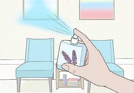 Add relaxing scents. You can purchase a product that emits a pheromone that promotes relaxation in cats when used as a diffuser or spray. Or, you can incorporate the scents of relaxing natural oils into a room, such as lavender. While certain pheromone sprays can go directly onto your cat’s skin, make sure to read the packages carefully and consult with your vet before use. Do not place an essential oil on your cat’s skin without talking to your vet, as certain oils, like lavender, can cause irritation and burning.