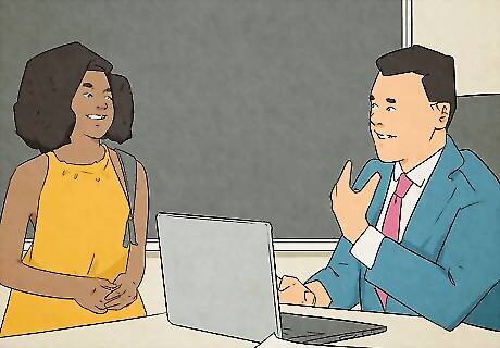 Visit professors during office hours to talk about coursework. College professors have office hours where they can meet with students individually to talk about assignments. Check your class’s syllabus to see when your professor is available and go to their office. Talk about any assignments you’re confused by or ask them about clarifications to their lectures. Pay attention to them as they explain the problems so you can have a better understanding of the material. If you have another class or commitment when your professor has office hours, ask them if you can make an appointment when you’re available. Unless they have another class running at that time, professors are willing to find time to talk to their students.