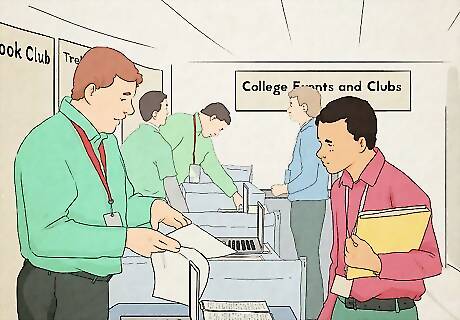 Get involved with extracurricular clubs and activities. Your college campus will have multiple clubs and organizations you can join to meet other people with similar interests. Look on your campus website to see what clubs and organizations are available and what times they meet. Attend one of the meetings for the club you join to see what they do and how you can get involved with them. During the first few weeks, your campus may have an event where you can see all the clubs available to join. Attend the event so you can talk to the club organizers and meet new friends. Your campus may also offer intramural sports so you can compete against other students for fun and try new sports.
