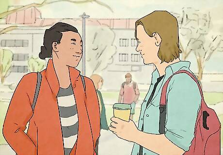 Ask people in your dorm if they want to hang out. If you’re living on campus, talk to the other people living in your building to see if they want to get together. You could invite them to watch a movie in your room, go get a meal together, or go to a campus event. While you’re hanging out with the people from your dorm, ask them about their major or what they like to do to see if you’ll get along with them. Be yourself around them so they get to know you well. Many times, your resident advisor (RA) will plan floor-wide events within the first few weeks so you can meet everyone that will be living around you.