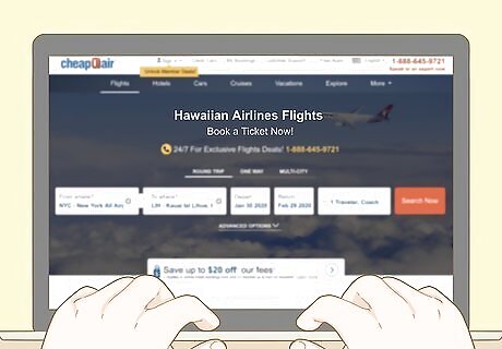 Take a nonstop flight to Oahu, Kauai, or Maui via Hawaiian Airlines. Hawaiian Airlines is a great choice from the west coast and elsewhere in the U.S. because they have direct flights from Boston, Las Vegas, Los Angeles, New York, Phoenix, Portland, Sacramento, San Diego, San Francisco, San Jose, and Seattle. Hawaiian Airlines also offers flights between the islands, including less-busy ones like Lanai and Molokai. Alaska Airlines, United Airlines, American Airlines, and Delta Airlines also offer direct flights to Oahu (Honolulu) from the west coast and some major hubs (like Chicago and Houston).