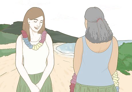 Learn useful Hawaiian words and practice hula dancing. Try picking up a few Hawaiian words or taking a hula class. Some hotels will offer hula classes or recommend a local class so you can learn. Luaus (Hawaiian feasts where there’s lots of hula dancing) happen regularly on every island and are a great way to experience true Hawaiian culture. Some common words to know: Aloha (ah-lo-hah) can be used to say "hello" or "goodbye." Mahalo (muh-hah-lo) means "thank you," so use it often!