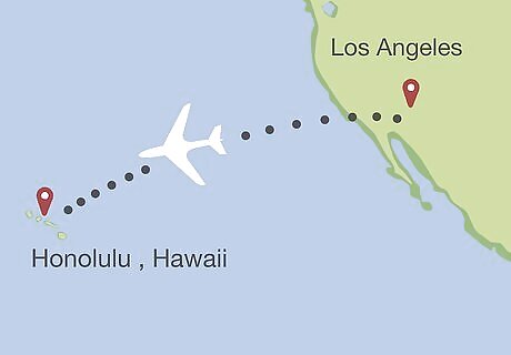 Make a connection in Los Angeles for the most flight options. Almost all major airline carriers that fly to Hawaii (Honolulu Airport - HNL) go through Los Angeles. Most of the flights depart anywhere from 7:00 AM to 5:00 PM, but you can find a cheap red-eye if you don't mind arriving late or in the early morning hours. The flight from Los Angeles lasts 6 hours, so there's time for a long nap! From November through March, the time in Hawaii is 2 hours behind the west coast (otherwise, it's 3 hours), so consider the time change if you're flying with children.