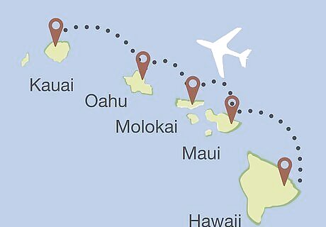 Go island-hopping via plane or ferry, if possible. If you can't decide which island you want to see, spend a day or two hopping between them. You can take a quick flight from Honolulu (Oahu) to Maui, Kauai, or The Big Island via Hawaiian airlines. Or, for a more scenic route, take a ferry. There’s no ferry service from Honolulu to Kauai, but a flight only takes 40 minutes. You can take a ferry from Maui to Lanai or Molokai. The Molokai Ferry only takes 90 and departs twice a day. The Lanai Expeditions Ferry departs 5 times a day and takes only 45 minutes. Perfect for a full day of serenity and whale-watching!