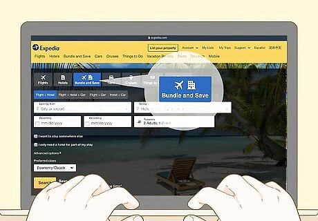 Book your airfare and accommodations together to save money. Travel packages on sites like Expedia, Booking.com, and Orbitz often offer cheaper rates for booking your airfare and hotel together. Do an online search for hotels that are close to your preferred activities (e.g., book something near the beach if you plan to do a lot of swimming or surfing). If you plan to rent a car, go ahead and bundle it into your package for a cheaper rate.
