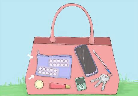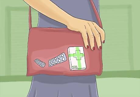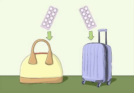 Keep important medications in more than one location. Whether you are driving out of town for a couple of days or heading abroad for a few weeks, losing your entire supply of a necessary medication can be a real headache. When possible, divide up your supply to prepare against theft, destruction, misplacement, etc. As mentioned in the sections of this article dealing with flying and/or traveling internationally, taking medications (especially prescriptions) out of their original packaging can add layers of hassle to the process. If possible, obtain multiple original packages of the medication(s) and place them in different locations (for instance, your carry-on and in your checked luggage). If not possible, place the secondary supply in a clearly marked container with identifying documentation handy. Don’t put all your important pills in your purse or backpack while out and about, or even in a single place in your hotel. Make sure you have a couple of days’ worth of medications available even if you are a victim of theft. You may wish to keep your daily medication (or enough for a few days) on your person while traveling, then put the rest in the hotel safe.