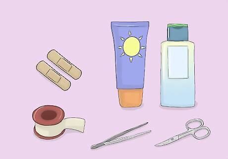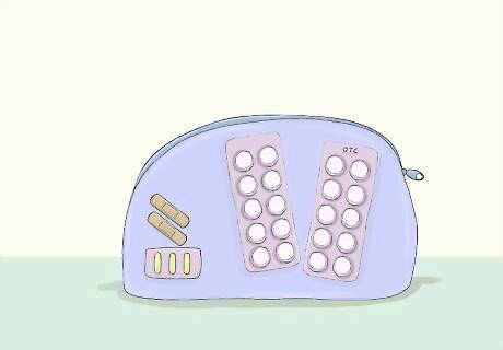 Supplement your kit with first aid supplies and optional items. Your needs are likely to vary depending upon whether you are headed to New York City or on a camping trip for the week. Take time to jot down a list of medical supplies and accessories that may be useful to bring along, and add them as space allows to your “travel health kit.” Based on your destination, consider bringing, for instance: insect repellent; sunscreen; hand-sanitizer or antibacterial wipes; lubricating eye drops; basic first aid supplies (first aid reference card, bandages, gauze, ace bandage, antiseptic, tweezers, scissors, cotton-tipped applicators); moleskin for blisters; aloe gel; digital thermometer; oral rehydration solution packets; sleep aids; and water purification tablets.