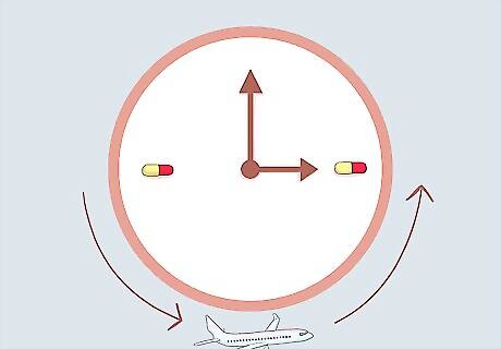 Adjust to time zone changes incrementally. If you need to take the same medication right before dinner each day and are crossing multiple time zones, you will need to adjust your schedule. Discuss the issue with your doctor or pharmacist before leaving to determine the best course of action for making adjustments. Generally speaking, you can incrementally adjust the time you take a medication, perhaps beginning on the flight itself. If you take a pill at 8 pm every day but are heading from New York to Los Angeles (where it would be 5 pm) for an extended stay, you may be able to take the pill one hour later each day for three days to remain on the 8 pm schedule.
