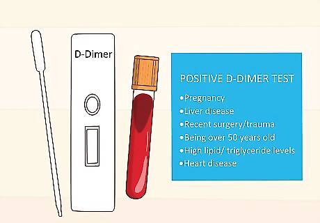 Do a D-dimer blood test. If the doctor doesn't see blockages or clots in your ultrasound, they may take a sample of your blood for testing. They'll examine the blood for signs that blood clots are breaking up. If the test comes back negative, you probably don't have DVT. Keep in mind that several factors may result in a positive D-dimer test including: Pregnancy Liver disease Recent surgery or trauma Being over 50 years old High lipid or triglyceride levels Heart disease