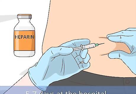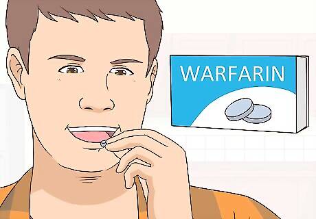 Take warfarin by mouth. Unlike heparin, the anticoagulant warfarin takes longer to work so the doctor will probably have you begin the warfarin while you get heparin injections. Once the warfarin pills begin working, the doctor will stop the heparin and you can leave the hospital. Follow your doctor's treatment plan for taking warfarin once you get home. Depending on the cause of your clot, you may need to take warfarin for a few weeks or the rest of your life.