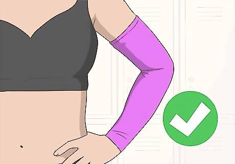 Keep your arm elevated and wear compression sleeves. Buy compression sleeves from a pharmacy or wellness center. These are made of elastic that will feel tight against your arm near the wrist but loose towards your shoulder. The compression sleeve will reduce swelling and improve circulation in your arm.