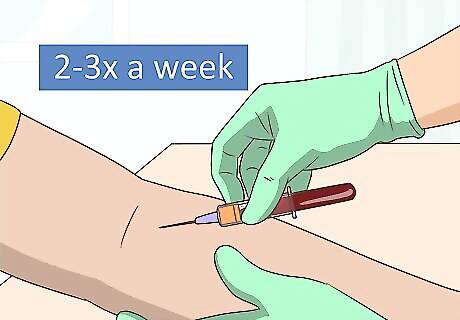 Get regular blood testing. After you've been following your doctor's treatment plan at home, you'll need to return to the hospital for blood work. You'll need blood testing 2 to 3 times a week starting out. The doctor will check your blood to see how long it takes to clot. Eventually, you may be able to go up to 4 weeks in between blood tests.