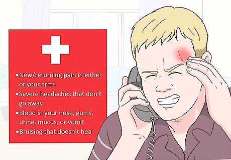 Contact your doctor if your DVT worsens. If you think you're experiencing side effects to any of your medications or your arm begins feeling worse, call your doctor or nurse. Get immediate medical attention by calling emergency services or going to an emergency room if you notice any of the following: New or returning pain in either of your arms Severe headaches that don't go away Blood in your nose, gums, urine, mucus, or vomit Bruising that doesn't heal