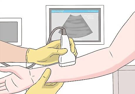 Get an ultrasound to confirm a DVT diagnosis. If the doctor suspects you have DVT, they'll do an ultrasound of your arm. The ultrasound can show blockages or clots deep within the veins of your arm. Although MRIs and CT scans can also show your veins and clots, they're not usually used to diagnose DVT.