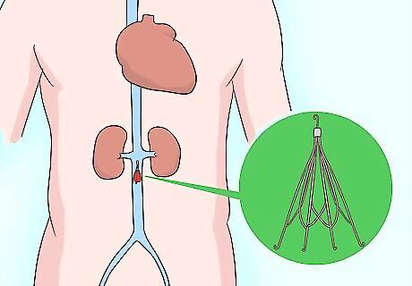 Get surgery to insert a filter into a large vein. If you can't take anticoagulant medications or they aren't working, a surgeon will insert a small mesh filter into 1 of the largest veins in your body. This filter should catch blood clots before they get to your heart or lungs. If you have a very large clot that's causing tissue damage, a surgeon may perform an emergency thrombectomy. For this procedure, the surgeon will cut into the vein in your arm to remove the clot.