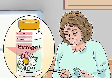 Adjust your estrogen supplement. Estrogen levels can affect migraines during menopause. Changing the estrogen levels, either increasing or decreasing depending on your individual situation, may help. For some short-term relief, women can undergo Hormone Replacement Therapy. Raising estrogen levels for a short period of time might help reduce migraines. Talk to your doctor about the benefits and risks of HRT for your migraines. Sometimes, migraines might occur after you begin estrogen therapy. Talk to your doctor if these migraines occur after starting estrogen. You doctor can reduce the dosage, take you off it completely, or change your prescription.