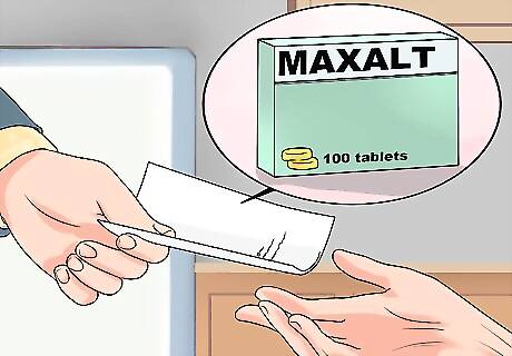 Take a prescription medication. These are medications your doctor can prescribe to help migraines. These medications not only help with pain, but also side effects, like nausea and sensitivity. There are medications that treat migraines and prevent them. Talk to your doctor about what treatment may be right for you. Examples of medications to help migraines include Maxalt, Frova, Axert, Zomig, Relpax, and others. These are Triptans and they are used for abortive therapy. Sometimes they come in an injection form and are injected at the first sign of a migraine. These can be used in conjunction with NSAIDS for systematic relief. If your migraines are severe, your doctor may also prescribe prophylactic drugs, such as Inderal and Topamax, that you take daily to prevent headaches. However, keep in mind that Topamax can cause some serious side effects, such as vision changes, cognitive changes, or kidney stones. Discuss all of the potential side effects of this drug with your doctor before deciding to try it. Beta Blockers are also approved for the treatment of migraines and these include metoprolol, propranolol, timolol. It is not recommended to use beta blockers if you are over 60 years old or if you are a smoker. Other medications that need further research in their effects on migraines include SERMS and GnRH agonists. A few studies have shown a reduction of migraines after treatment with these medications. Depression may be an issue in menopause as well and treatment with a tricyclic antidepressant, amitriptyline, has been shown to improve symptoms of migraines. Consider asking your doctor about antidepressants if you are also having symptoms of depression. Other medicines that may be helpful for migraines include botulinum toxin, Butterbur, Coenzyme Q10, feverfew, magnesium, NSAIDS, Riboflavin, and simvastatin plus vitamin D. Discuss all of your options with your doctor to determine what will work best for you.