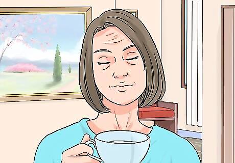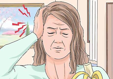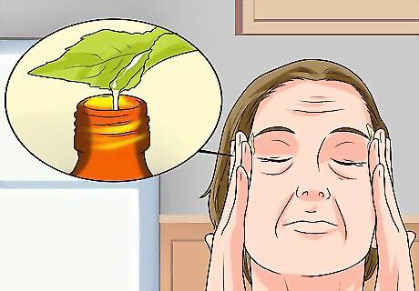 Use essential oils. Aromatherapy and essential oils may help ease menopause migraines. You can smell the oil in the bottle, put it in a diffuser, or place it on your skin. You can also massage oils onto your temples, making sure not to get them into your eyes. Good oils for headaches are lavender, ginger, and peppermint. Try rubbing them onto your temples or smelling them.