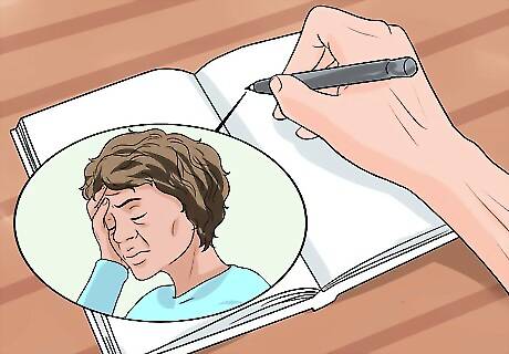 Keep a headache diary. One way to figure out if anything is triggering your migraines is to keep a headache diary. In this diary, whenever you get a headache, you will write down activities you do, foods you eat, and feelings you have. Track everything for the previous 24 hours. Write down the time and date that you have migraines and try to make connections between reoccurring migraines and common activities, foods, or feelings. While you should monitor trigger foods in your headache diary, do not eliminate all trigger foods at once. The stress of avoiding all foods might cause migraines. Instead, use your headache diary to try to piece together individual things that may affect your migraine frequency. Common things that might cause migraines include your hormone cycles, stress, disrupted sleep patterns, and skipping meals. Look for patterns with these common causes.