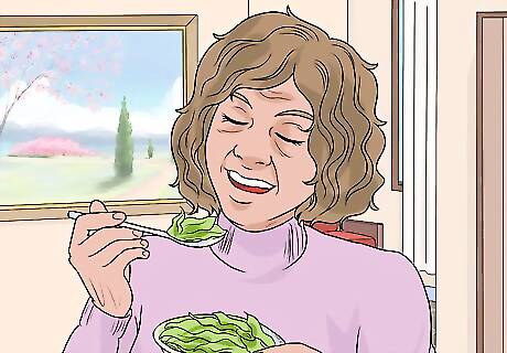 Eat a healthy diet. Eating a healthy diet may also help manage your migraines. Obesity can lead to chronic headaches, so a healthy diet can help you maintain a healthy weight and eliminate that cause of migraines. Make sure to eat three meals each day. Try to eat the meals at roughly the same time every day. Include plenty of fruits and vegetables into your daily diet. You should eat 5 or more servings of fruits and vegetables every day. Choose whole grains over refined carbs. Eat breads and pastas made from whole grains instead of white bread or pasta. Try quinoa as a side dish, or a sweet potato instead of white potatoes. Choose snacks that include whole grains instead of refined carbs. Reduce the amount of sugar and fried food you eat.